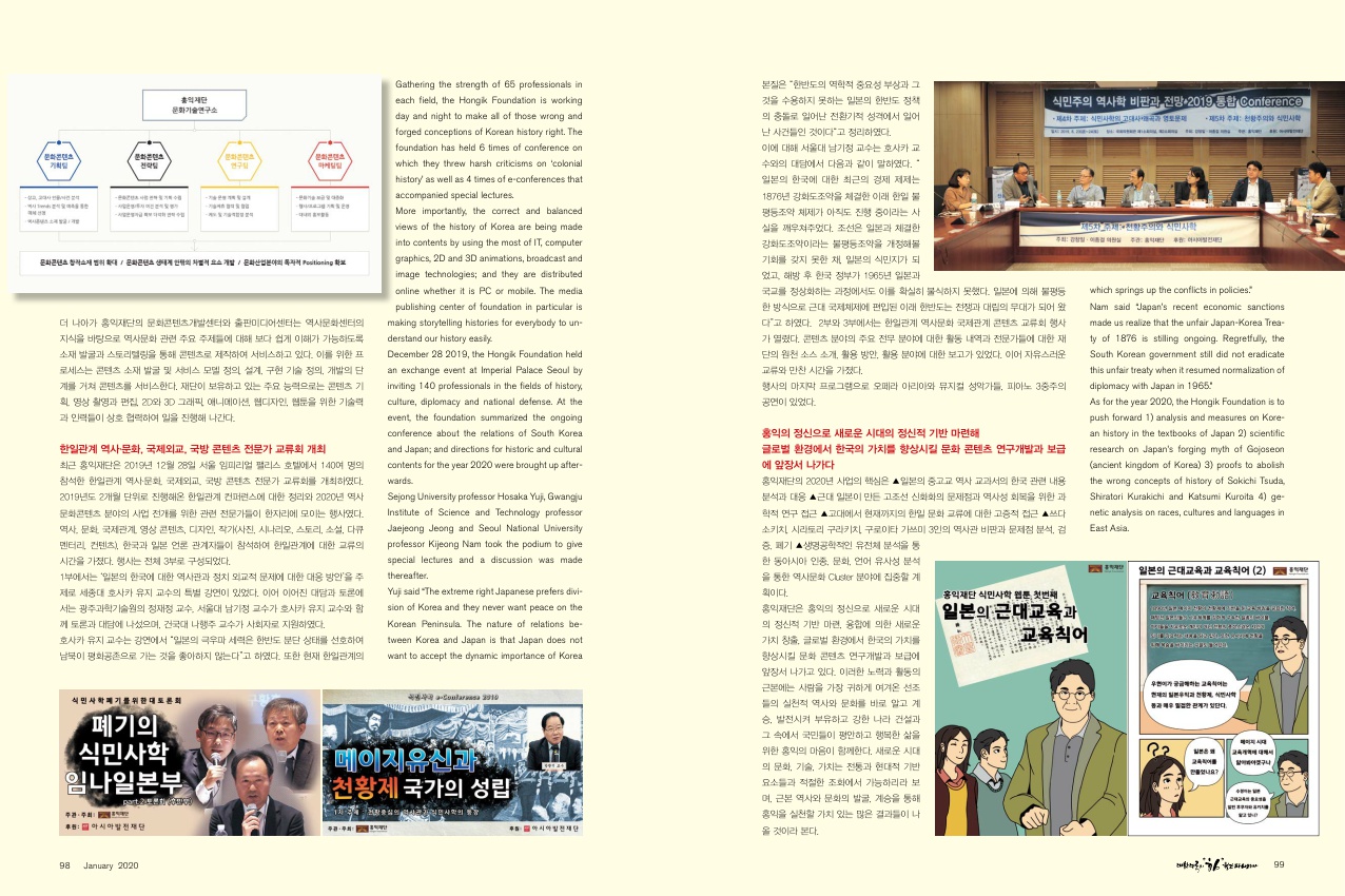 One of the core projects of the foundation is to make distorted history by Japan right alongside settling down the issues between the two coun-tries.